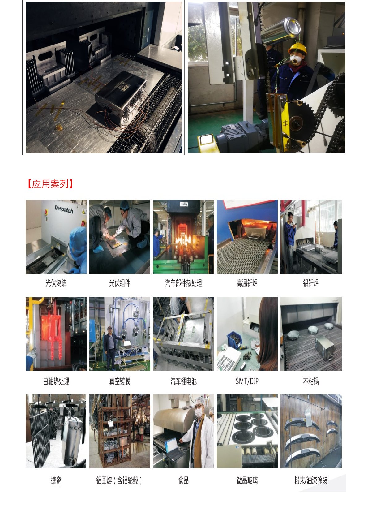 光伏烧结炉炉温测试仪,光伏层压机炉温测试仪,光伏PEVD,PVD,CVD镀膜炉温测试仪,铜钎焊炉温测试仪,涂装烤漆炉温测试仪,不粘涂料炉温测试仪,钢铁热处理炉温测试仪,轮毂热处理炉温测试仪,波峰焊回流焊炉温测试仪,铝钎焊炉温测试仪,汽车涂装炉温测试仪,食品烘烤炉温测试仪,陶瓷烧制炉温测试仪,搪瓷炉温测试仪,玻璃烤花退火炉温测试仪,特殊定制炉温测试仪等。